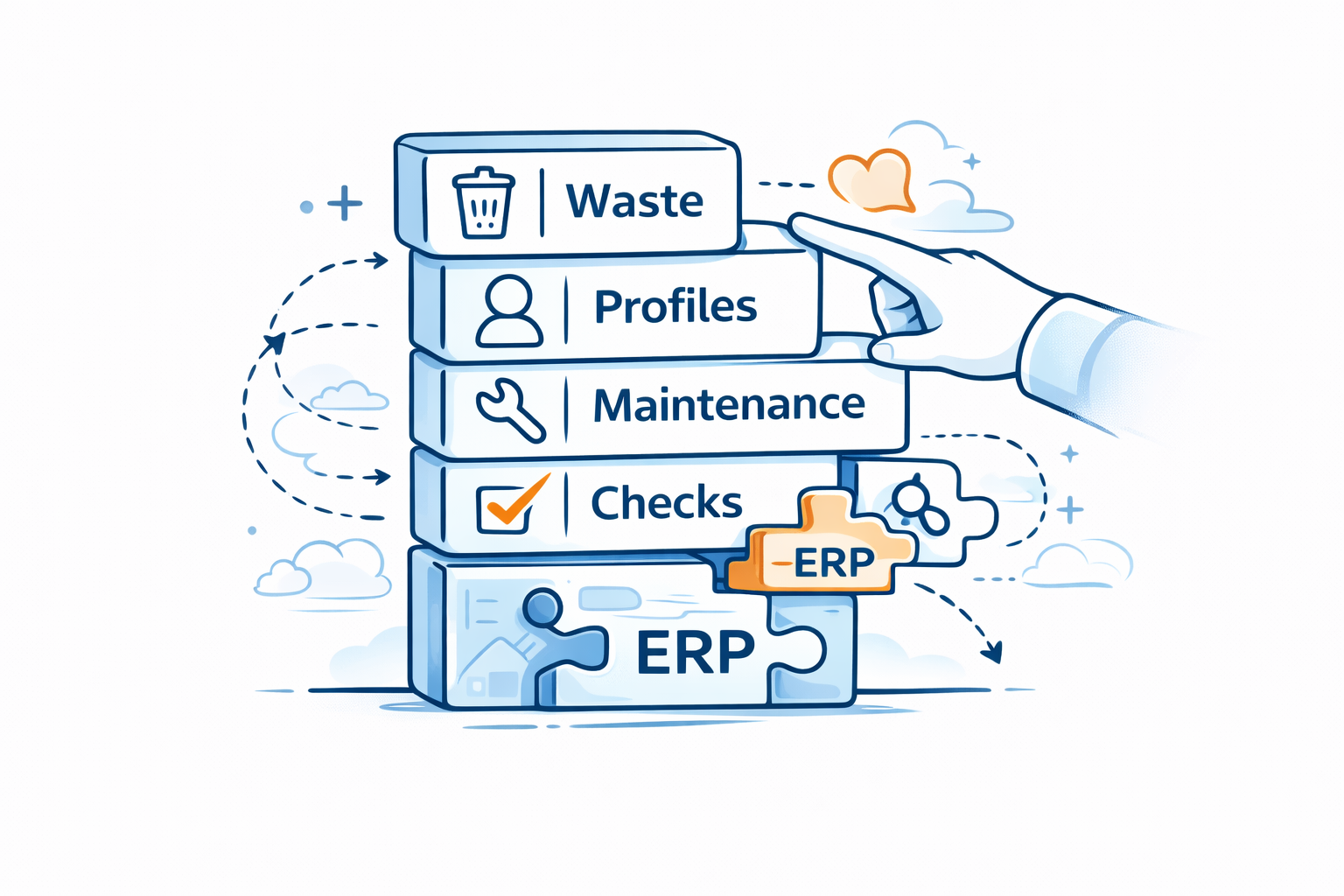 Tutti i moduli sono integrati in un unico ERP ambiente e sicurezza, senza lock-in e senza dover cambiare sistema ogni volta